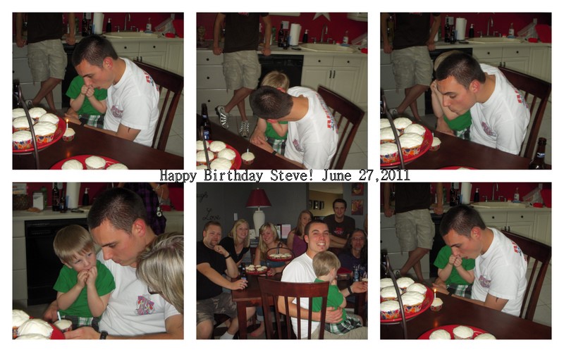 We recently {as in Sunday/Monday} celebrated Steve's 25th Birthday! What a fun time it was! We started the celebration off with homemade spice cake {per the birthday boy's request}with lots of family and friends.We then headed out to Steve's favorite place to eat,El Tapatio with a few close friends.Steve was hurting a bit that night-- lots of good food and drinks always makes for a happy birthday!The following morning {Steve's actual birthday} he was treated to a professional massage and lunch.We made a stop over at the rehabilitation home to see Grammy and to drop her off some cupcakes since she was unable to join us. She was happy to be able to wish Steve and Happy Birthday. The evening concluded with a few rounds of Wii and the delivery of our new patio chairs! {I am going to try a new photo-collage program and hopefully get some pictures of the events to you later today.}